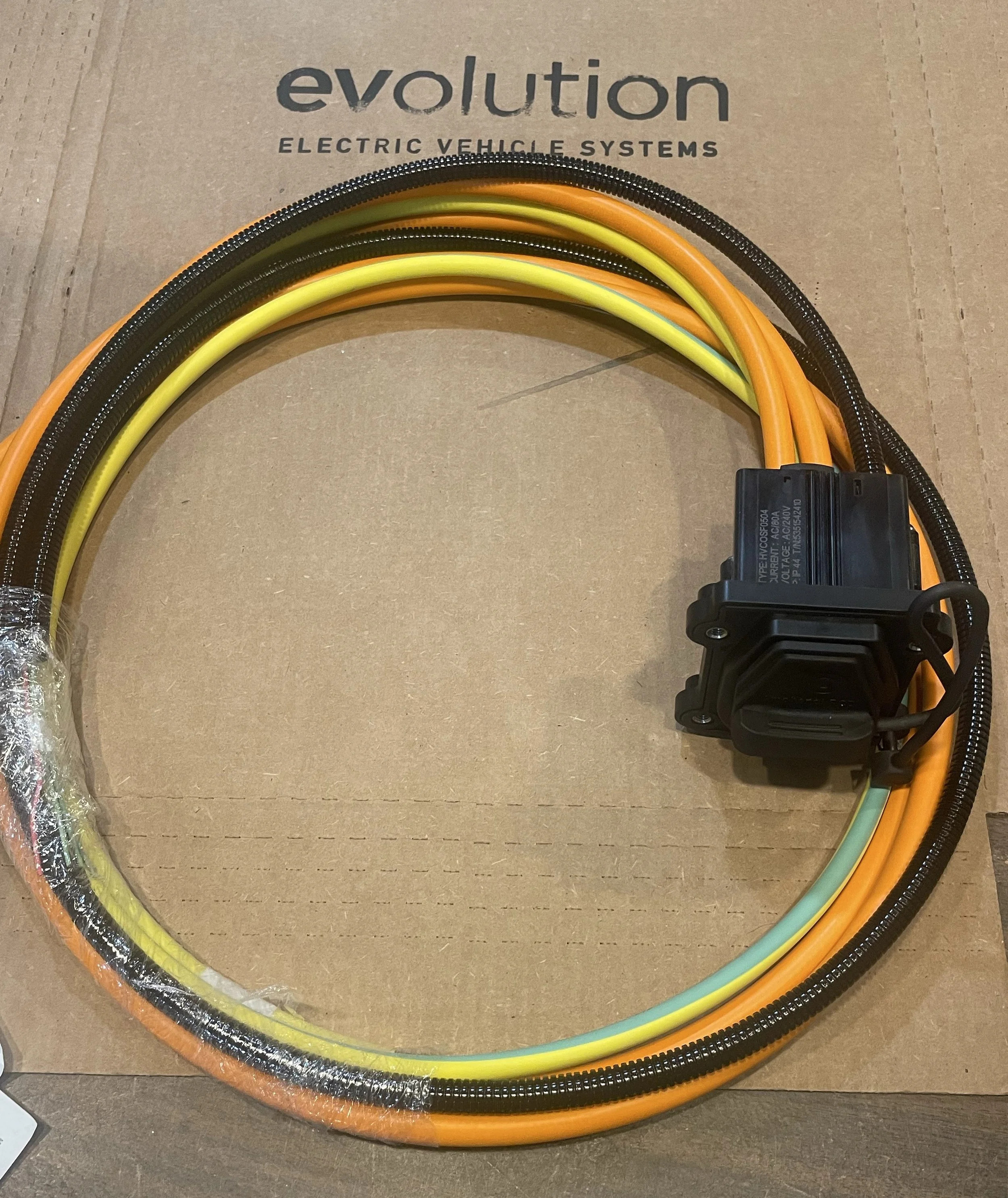 Amphenol SAEJ1772 AC Electric vehicle charging inlet, 80 amp rating, 25 mm^2 power conductors, 2 meter long cable, cover.